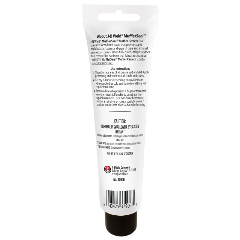MufflerSeal Muffler Cement is a metal containing paste that prevents and seals leaks at seams and gaps of pipe and exhaust connection points. When fully cured, this paste dries to a cement-like hardness that is heat resistant up to 850 F.