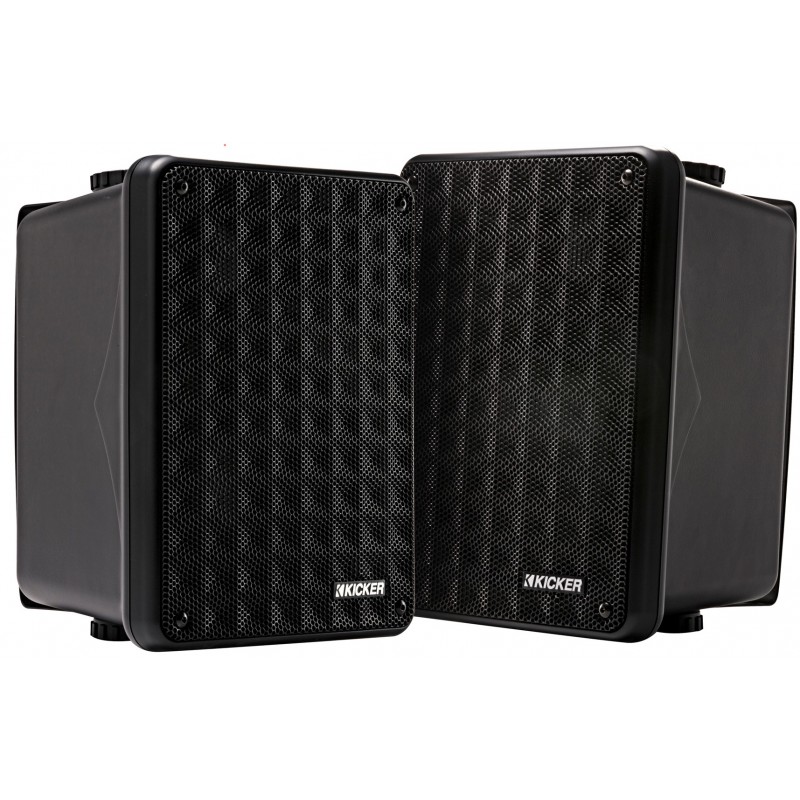 The KB6 is a full-range, high-efficiency speaker system truly suitable for indoor and outdoor use. Providing an 8-Ohm load and ready to be driven by your home stereo receiver or a car-audio amplifier, you can easily run a single pair or more with minimal effort (min. 18 AWG speaker wire required for easy-pinch terminals). The included bracketing makes it easy to install vertically or horizontally - on nearly any flat surface. Designed as a dual-enclosure weatherproof system, the KB6 features bold 6-1/2 -inch KICKER woofers and 2 x 5-inch, compression-loaded horn tweeters. The woofers utilize precisely tuned polypropylene cones and rugged Santoprene surrounds. The system acoustically blends powerful bass and thrilling highs for an all-weather KICKER sound you?ll love to listen to all day long.