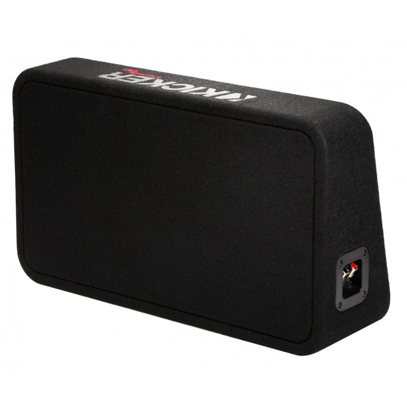 The new CompRT Subwoofer Enclosures make surprisingly strong, smooth bass in a box under seven inches deep. The CompRT Thin Profile Eight-Inch Subwoofer Enclosure comes loaded with a Reflex Subwoofer and RT Sub, then carpeted and loaded with a single 2O terminal. Covered in stylish black carpeting and built with thick MDF, these sturdy enclosures take some serious power, yet easily fit under a seat. Match them with KX Amplifier for big power in a small footprint. The CompRT Eight-Inch Enclosure works best with 300 watts of recommended power.